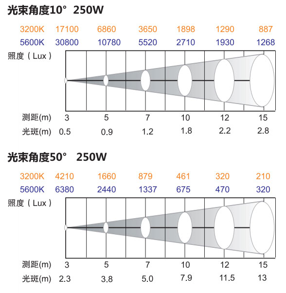 亮 度:10°≥2700LUX/10米;50°≥600LUX/10米5600K